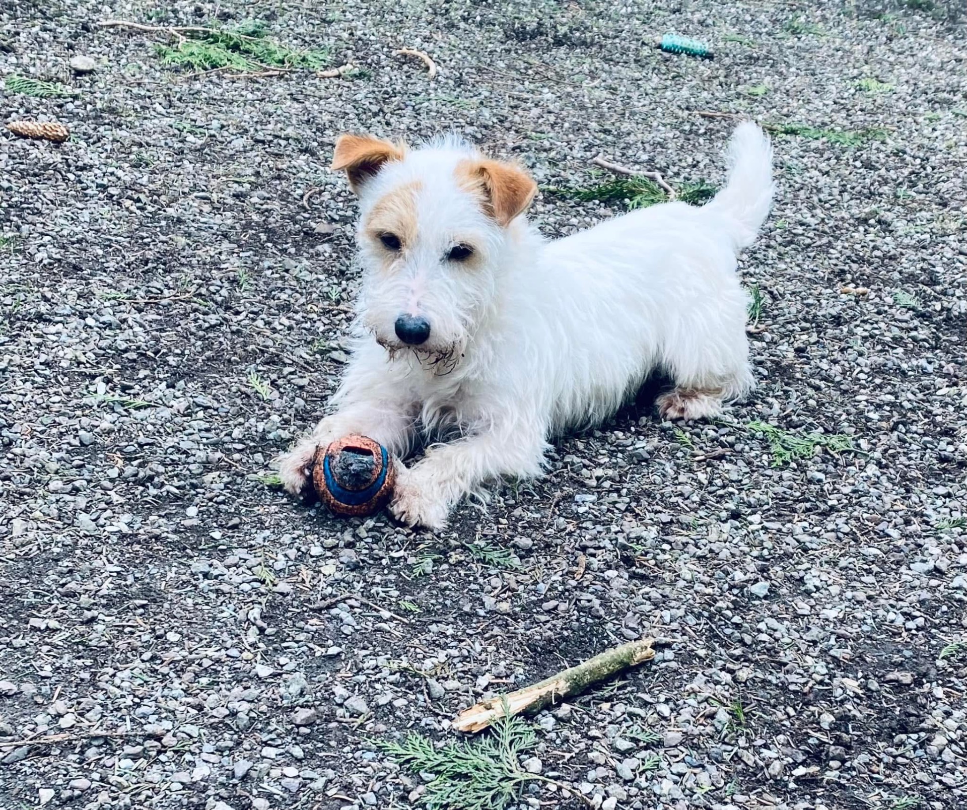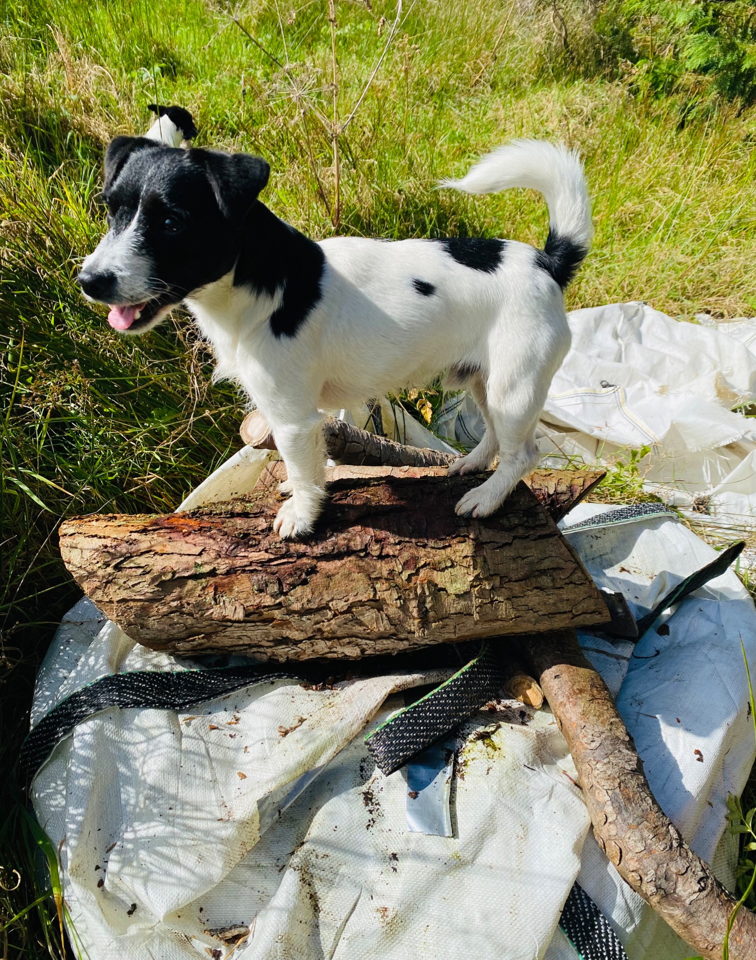 Mickey is a blend of Australian/European x English working bloodlines and is a super little fella, happy go lucky, willful yet eager to please, loves playing tog o war, ball and has mastered killing rats from the age of 5 months, he loves ratting in the barns or compost heap. He is a full rough coat and is tan/white. He has not been shown as does not particularly enjoy the grooming process, he prefers being a scruff, chasing critters and playing tug of war, very much a family dog who loves humans but does not like other male dogs in his territory (ok on walks) as he thinks he should be the only male. He has sired a few litters for us with some lovely puppies and he is sire to Honey and Cassie who we hope to carry his line on with.