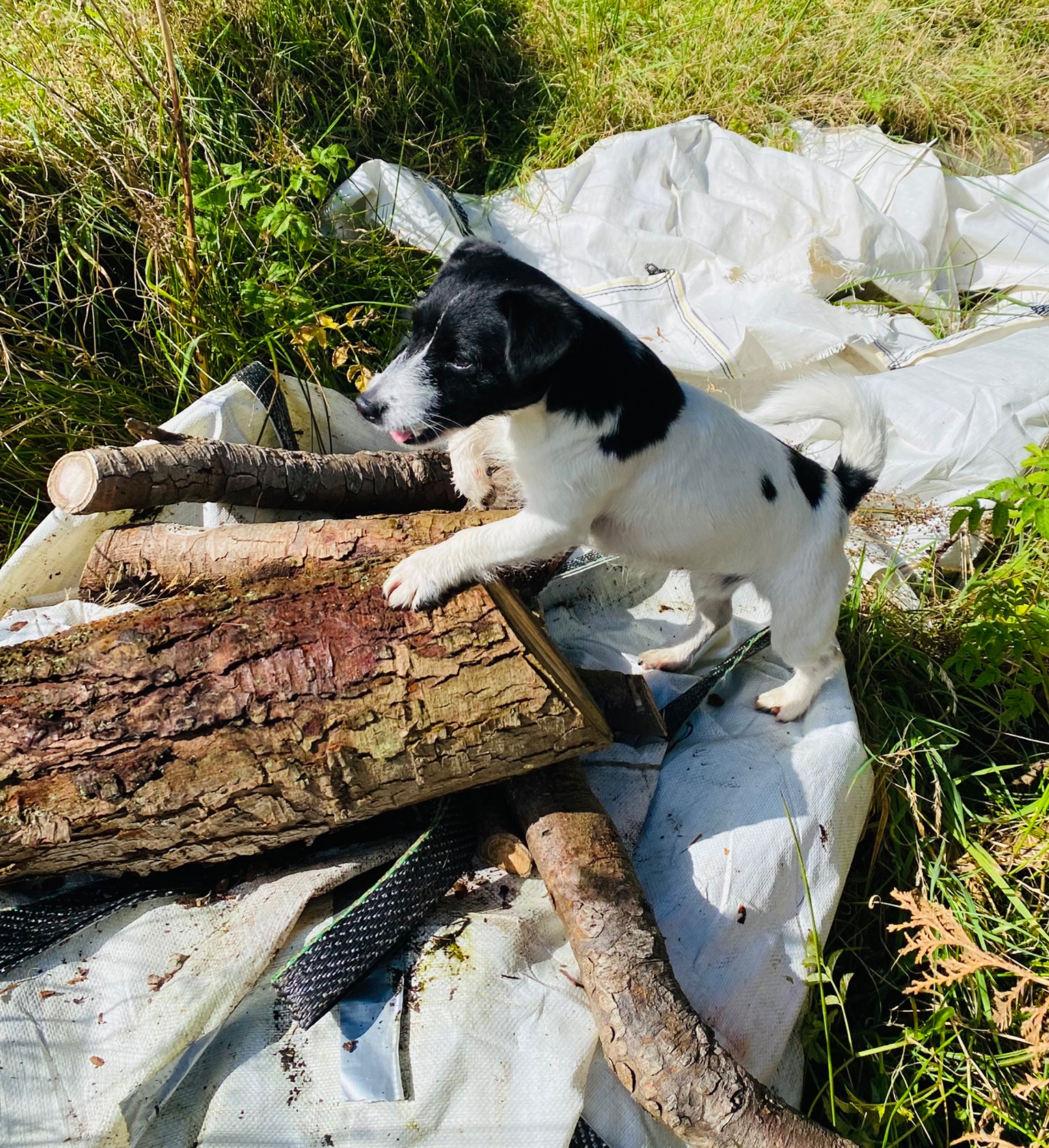 Our boy Dave the dog, he is a son of Harry x Geri, he is a tan/white full rough coat and a delightful boy. Always happy to be with anyone, loves people and other dogs, he has not a bad bone in his body.
